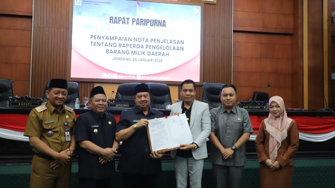 JOMBANG, JOMBANG TERKINI.COM – Pemerintah Kabupaten (Pemkab) Jombang tancap gas dalam membenahi tata kelola kekayaan daerah. Bupati Jombang, Warsubi, S.H., M.Si., resmi mengajukan Rancangan Peraturan Daerah (Raperda) tentang Pengelolaan Barang Milik Daerah (BMD) dalam Rapat Paripurna DPRD Jombang, Senin (26/1/2026) pagi.