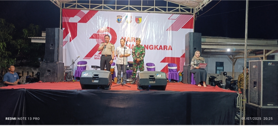 Jombang terkini.Com Jombang, 1 Juli 2025 – Dalam rangka memperingati Hari Ulang Tahun (HUT) Bhayangkara ke-79, Camat Bareng Usman hadiri HUT Bhayangkara Ke-79 dihalaman Polsek Bareng pada Selasa malam.