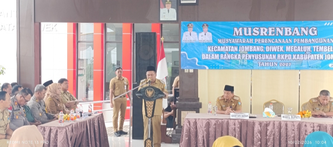 JOMBANG TERKINI.COM DIWEK – Pemerintah Kabupaten Jombang mulai memetakan langkah strategis untuk pembangunan tahun 2027. Melalui Musyawarah Perencanaan Pembangunan (Musrenbang) RKPD tingkat Kecamatan yang digelar di Pendopo Kecamatan Diwek, Selasa (10/2/2026), Pemkab menegaskan fokusnya untuk mengubah Jombang dari sekadar daerah lintasan menjadi pusat pertumbuhan ekonomi yang inklusif.