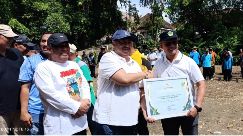 Dalam kegiatan yang dihadiri langsung oleh jajaran Forkopimda dan tokoh masyarakat, Kemenag Jombang mendapat kehormatan dengan menerima penghargaan “Satu Pernikahan Satu Pohon Lestari” atas inisiatif dan dukungannya dalam gerakan penghijauan. Penghargaan ini menegaskan peran strategis Kemenag dalam mendorong kesadaran lingkungan melalui sektor layanan publik, khususnya pada prosesi pernikahan.