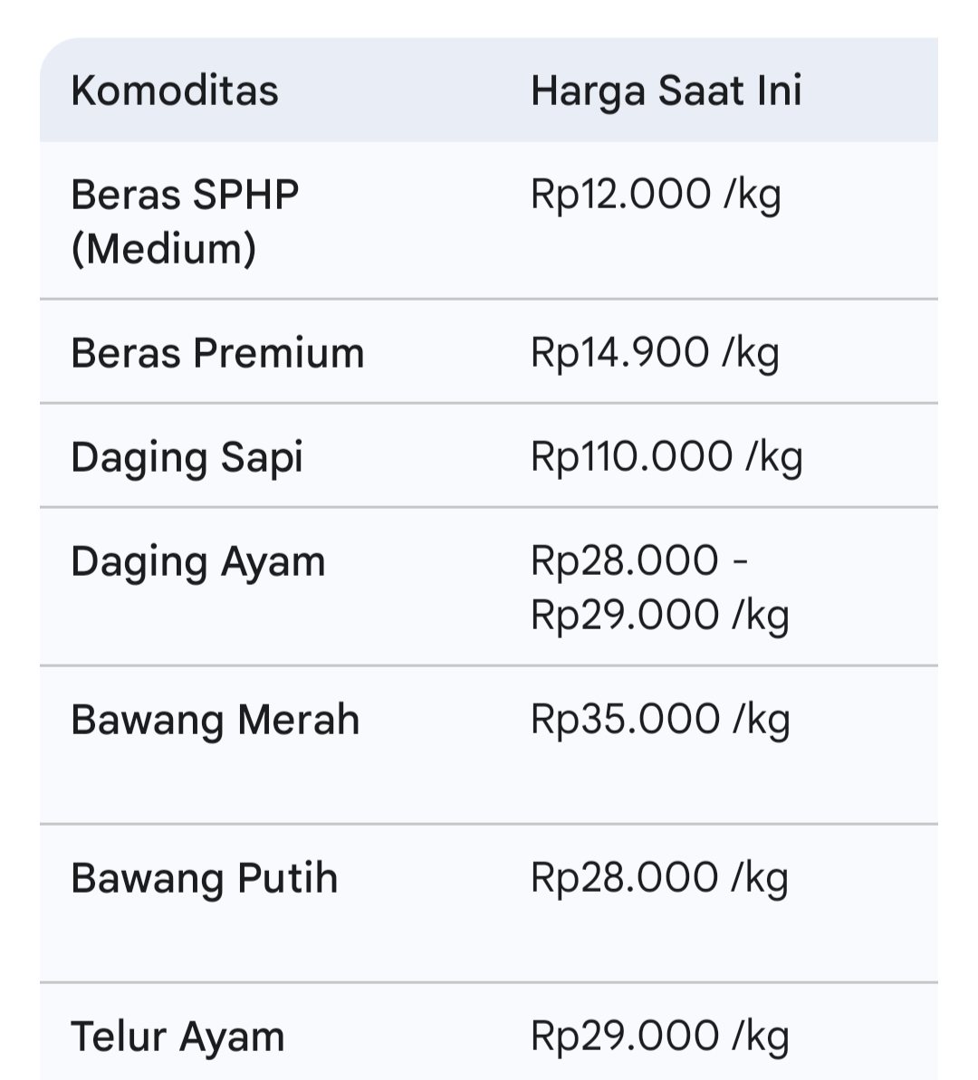 Berikut ringkasan pantauan harga di Pasar Pon hari ini: