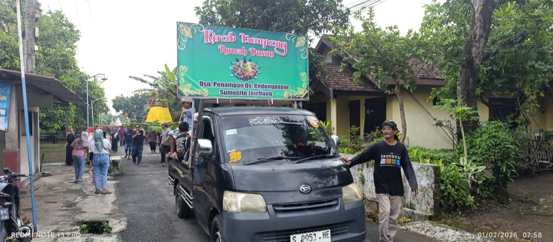 JOMBANG TERKINI.COM SUMOBITO – Kemeriahan menyelimuti Dusun Penampan, Desa Kedungpapar, Kecamatan Sumobito pada Minggu (1/2/2026) pagi. Ratusan warga tumpah ruah ke jalan untuk mengikuti prosesi Kirab Tumpeng dalam rangka tradisi Ruwah Dusun Penampan.