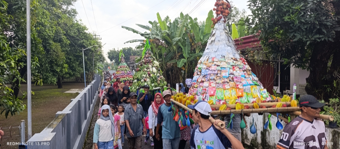 Suasana semakin pecah saat rombongan kirab tiba di halaman Masjid Al-Istiqomah. Tanpa menunggu lama, warga langsung saling berebut gunungan tumpeng yang berisi hasil bumi dan aneka jajanan pasar. Tradisi “rebutan” ini diyakini masyarakat setempat sebagai simbol ngalap berkah atas hasil panen dan kesejahteraan dusun.