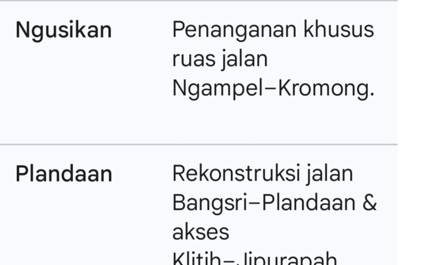 Selain merancang tahun 2027, Gus Wabup juga membeberkan sejumlah proyek perbaikan jalan yang akan segera dieksekusi pada tahun 2026 sebagai hasil Musrenbang sebelumnya: