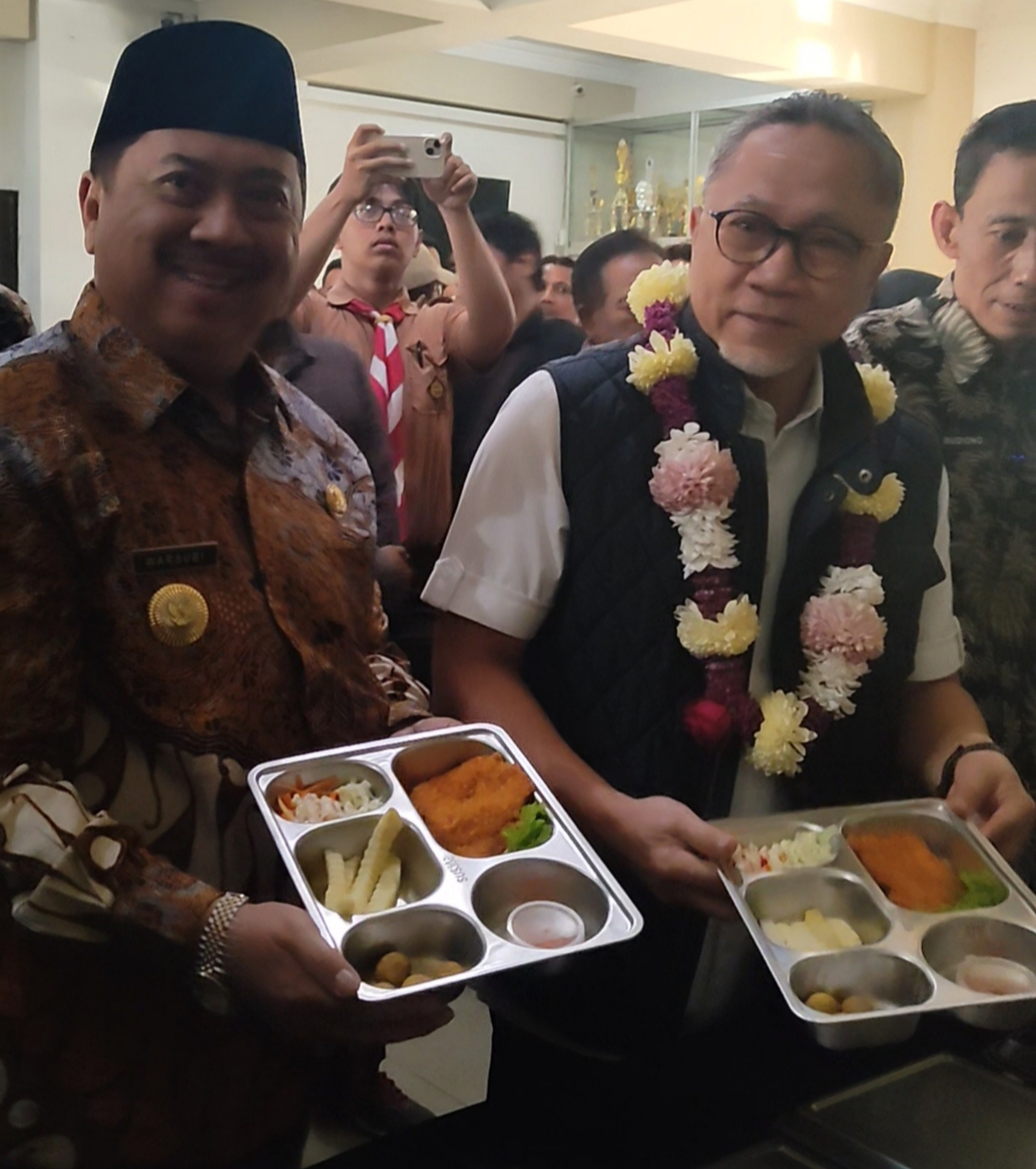 Bupati Warsubi dan Menko Pangan tidak hanya memantau, tapi juga ikut membaur bersama ratusan siswa. Mereka memastikan bahwa makanan yang tersaji tidak hanya memenuhi standar sains kesehatan, tapi juga menggugah selera.